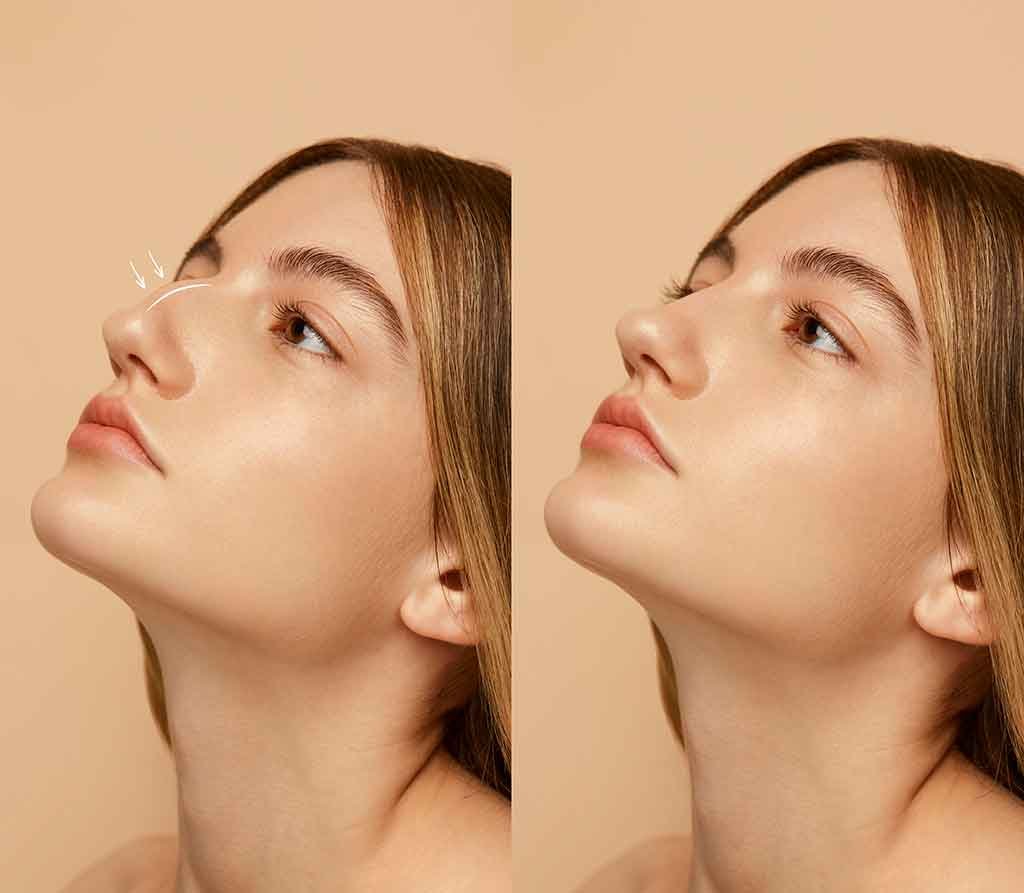 Burun Şeklinin Düzeltilmesi: Burun kemiğindeki eğrilik, burun ucu düşüklüğü veya burun kanatlarındaki asimetriler düzeltilerek daha dengeli ve estetik bir görünüm elde edilir.